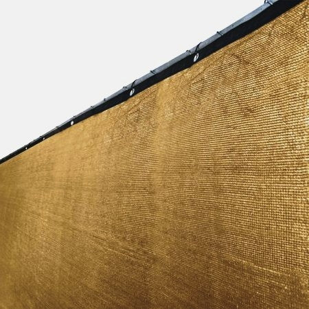 The Tarps Now privacy fence screen tarp 72” x 300’ panels are knitted with polyethylene in a wind break weave providing 87% shade. They include reinforced hems using a heavy webbing tape with brass grommets spaced 24 inches apart around the perimeter providing excellent tie down capabilities.