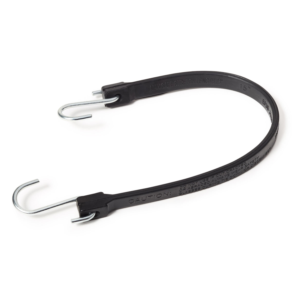 EPDM Black Rubber Tarp Strap Features:Material: EPDM Rubber (ethylene propylene diene monomer (M-class) rubber)Color: BlackStrap Width: 11/16"Grade: A GradeEnds: Strong Steel S-HooksSize: 15" Length (19" including hooks)Qty: 50 Pieces per package