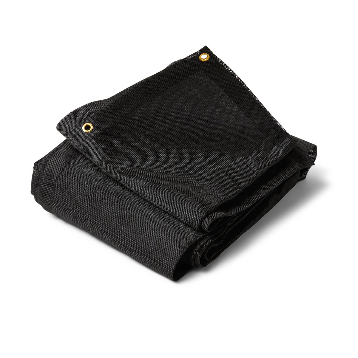 Our Black Mesh Shade Tarp has a material weight of 6.8 ounces per square yard and includes brass grommets about every 18 inches around all four sides, with resilient hems reinforced with webbing. You can use our Mesh Tarp for residential and industrial duty applications requiring mesh style material. This Shade Tarps is finished size. This particular Tarp is sale priced because it is long and slightly out of square with one length at 25'-11" and the other 25'-8". This style mesh tarp is imported.